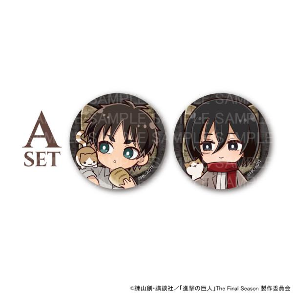 - キャラクターグッズ > ピンズ・ピンバッジ・缶バッジ > 進撃の巨人 ミカサ きゃにめ 缶バッジ3点 cd柄ポストカード7点セット princesscafe_pri-4570162069574