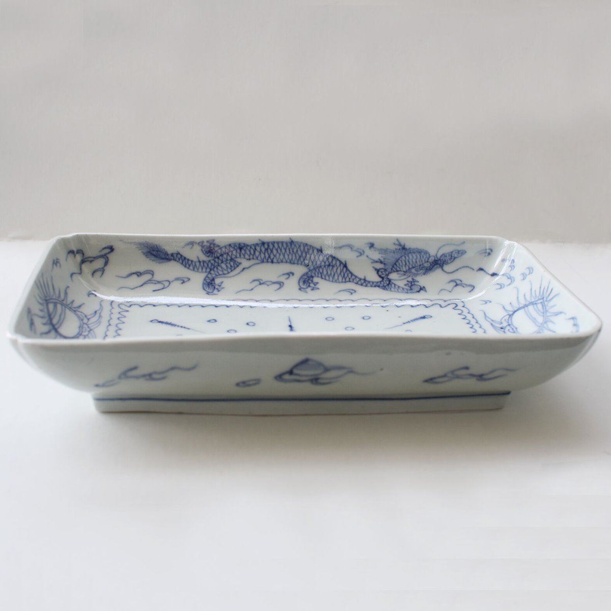 | 商品の特徴 | fit=scale-down,w=1200。R-12b 古伊万里 KOIMARI 染付 宝珠雲龍文 長角皿 | imarimaru。古伊万里 白磁 陽刻模様 染付 波千鳥 青海波 輪花型 五寸皿。古伊万里 染付 龍に宝珠図 豆皿 2枚セット。。最終値下げ価格です纏め買いによる送料相当のお値引き以外値下げ交渉はご容赦下さいサイズ:幅18.3×12.8、高4~4.5型成型による陽刻の意匠口周りは鉄錆を施しています見込みに1箇所、降り物跡(写真)使用擦れ以外に後傷は有りません | ||