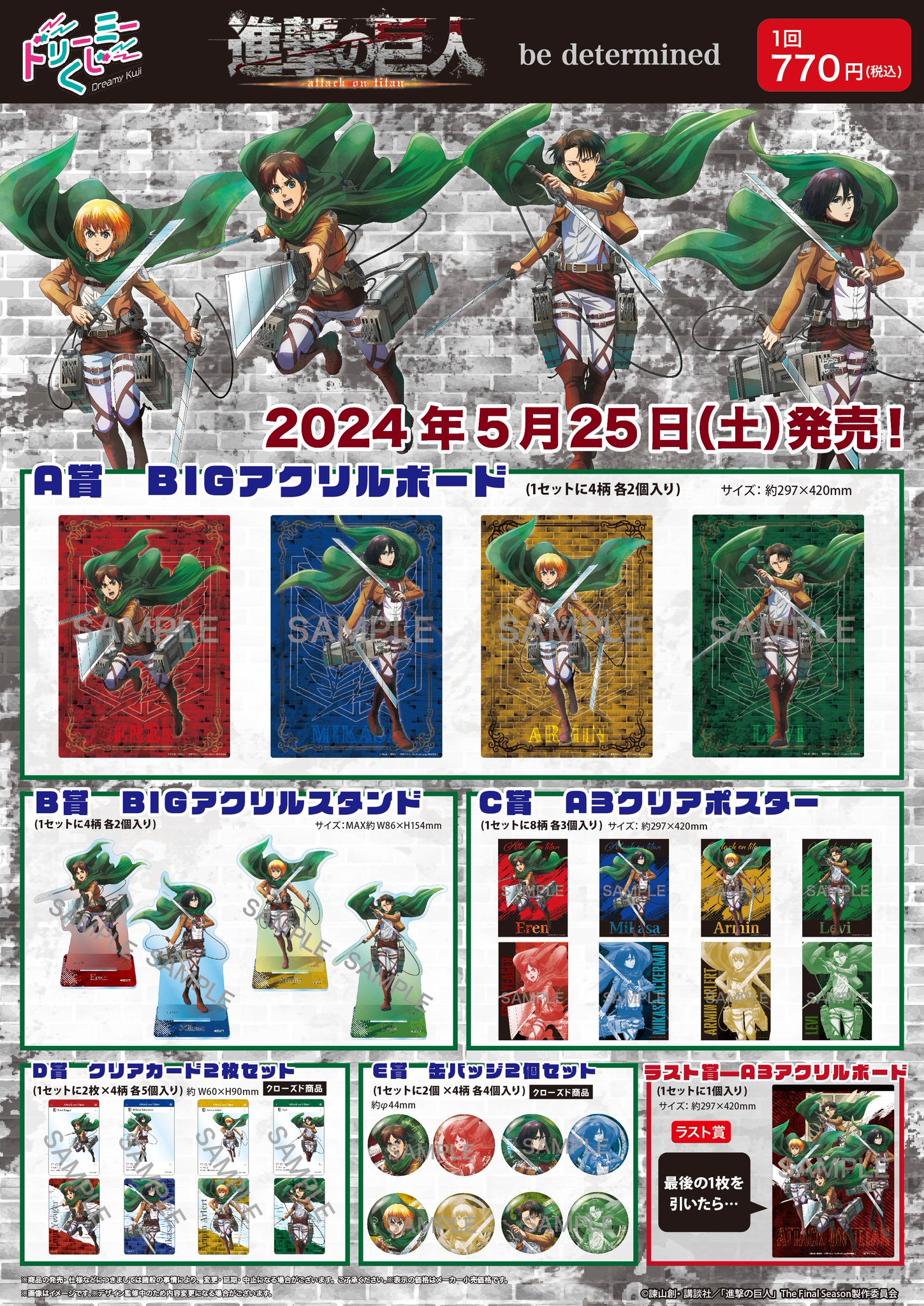 | メーカー | ドリーミーくじ 進撃の巨人 〜determined〜 1ロット |