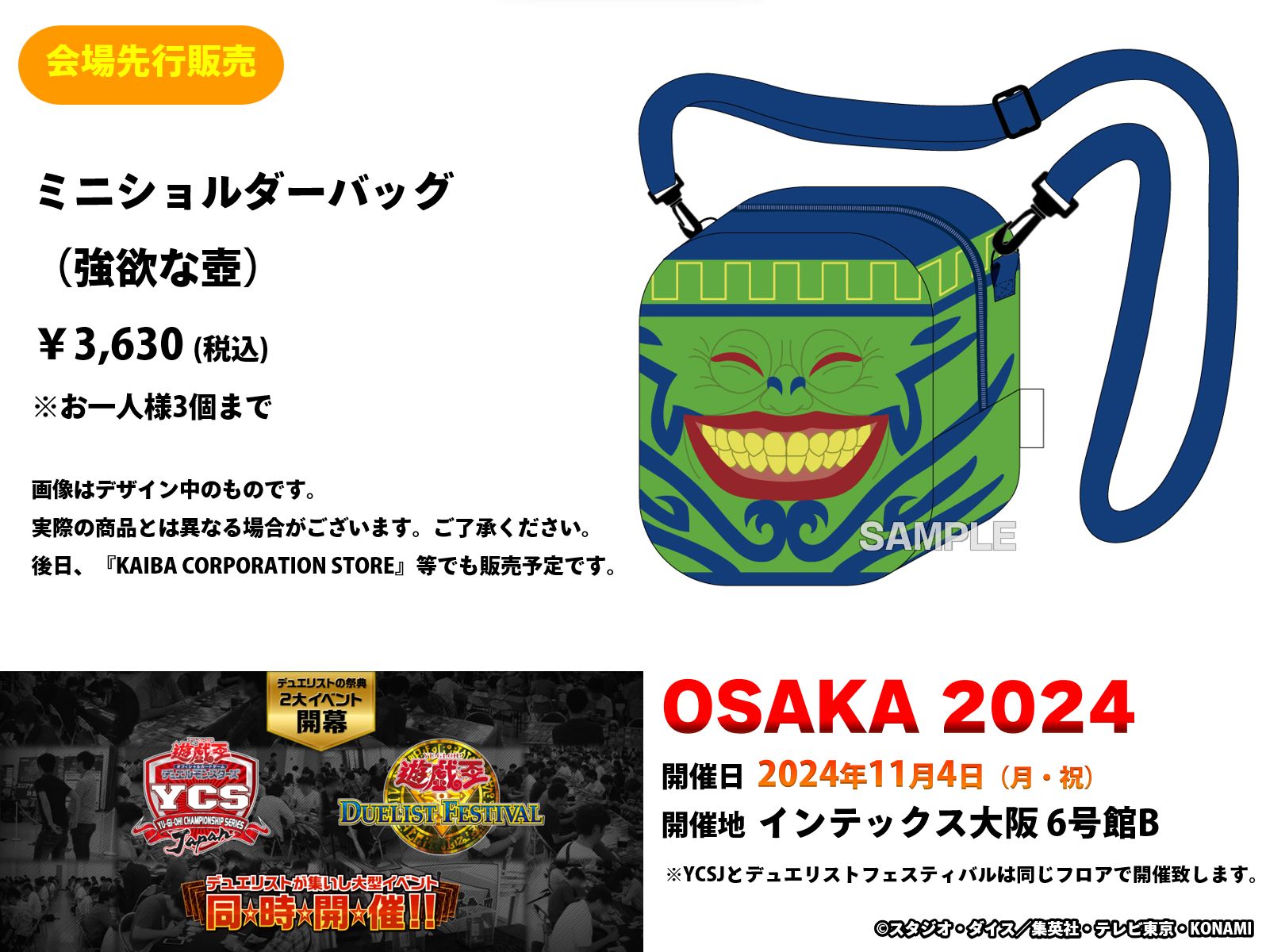 | 商品の特徴 | 公式】遊戯王OCG on X: 。ミニショルダーバッグ(全2種) | KAIBA CORPORATION STORE。遊戯王 YCSJ大阪 強欲な壺 ミニショルダーバッグ。遊戯王の大型イベントYCSJ大阪2024の会場で購入した強欲な壺のミニショルダーバッグになります。ミニショルダーバッグ(全2種) | KAIBA CORPORATION STORE。素人保管のため、神経質な方はご遠慮ください。。 | ||