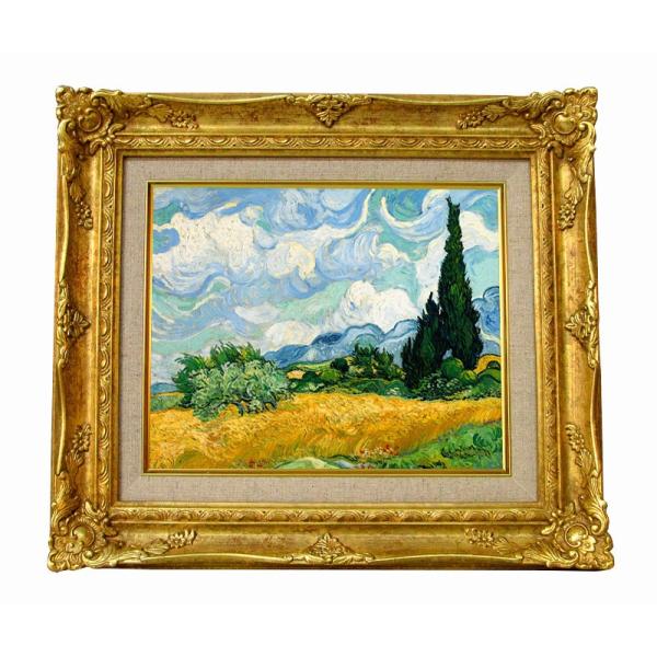 - 美術品・アンティーク・コレクション > 絵画 > ゴッホ美術館 カビゴン キャンバス 白枠 木製額縁 ジクレー 45x35 世界の名画 ゴッホ 黄色い麦畑と糸杉 ジクレーキャンバス複製画