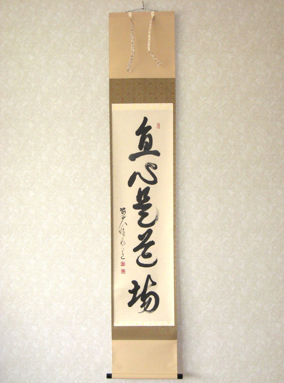 - 美術品・アンティーク・コレクション > 書 > 【真筆】茶掛け 直心是道場◆大徳寺派 渓雲寺 前大徳 平兮伯道 共箱・タトウ箱付 真筆】茶掛け 茶掛 直心是道場◇大徳寺派 渓雲寺 前大徳 平兮伯