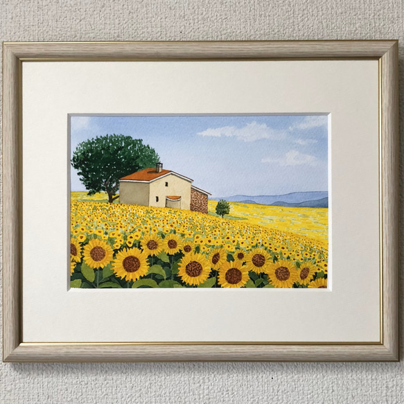 | メーカー | 透明水彩画 原画 「ひまわり畑01」額縁付 SMサイズ 風景画 ひまわり畑」透明水彩画 |