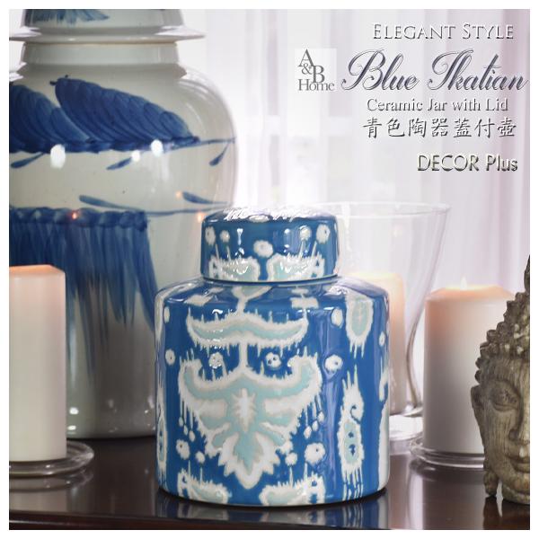 - 美術品・アンティーク・コレクション > 工芸品 > 美品 陶磁器 蓋付 壺 瓶 年代物 鮮やかな色合いの絵柄が華やかな 丁寧に描かれ A&B HOME ブルー イカティアン 青色陶器蓋付壷 飾り壺