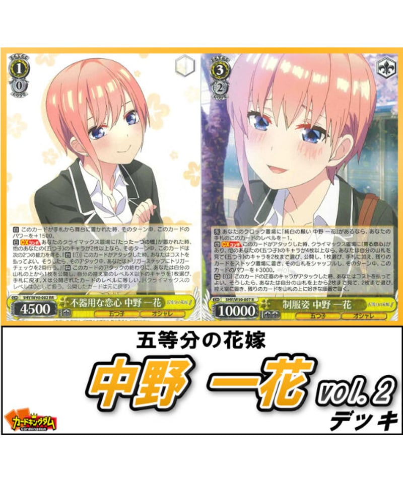 - トレーディングカード > ヴァイスシュヴァルツ > ヴァイスシュヴァルツ 五等分の花嫁 一花 デッキ パーツ・スリーブ付き ヴァイスシュヴァルツ 393『五等分の花嫁「中野 一花 vol.2