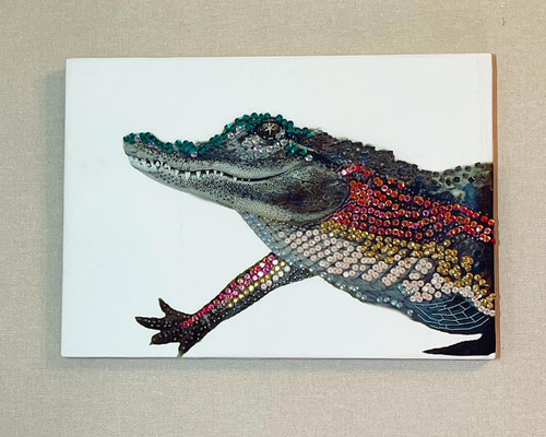 - 美術品・アンティーク・コレクション > 工芸品 > ❤️希少!ポップアートの先駆者James Rizziの ワニ型一輪刺し 刺繍 アート絵画『animal à la mode-アニマル・ア・ラ・モード