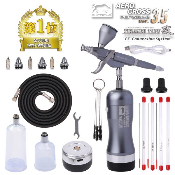 | 商品の特徴 | rezuell_ver35t。aurochs 充電式 エアブラシ AERO CROSS portable エアロクロス。aurochs 充電式 エアブラシ AERO CROSS エアロクロス コードレス。プラモデル作成の引退品です!プラモデル作成に使用しましたので汚れ等有りますので綺麗な状態をお求めの方は購入をお控えくださいm(_ _)m昨年12月に購入し、5回以上使用しました。aurochs(オーロックス)|オンラインショップ|プラモデル。プラモデル作成引退の為出品します!塗装後の磨きパーツもセットでお付け致します!(全て2回以上は使用しています、コンパウンド用クロスは切って使用していました!)塗料23本空き瓶4本薄め液1本タミヤウェザリングマスター《Dセット》1つオイル汚れがありません!使用した後ですので汚れ等有ります!ミラーフィニッシュと塗装用マスクは(未使用)です!即購入大歓迎!aurochs 充電式 エアブラシ エアロクロス ver.3.5 ダブルアクション ハンドピース コンプレッサー コードレス オーロックス 口径 0.2mm 0.3mm 0.4mm 0.5mm セット USB type-C 小型 軽量 プラモデル プラモ 模型 塗装 ペイントプロ完全監修のハンディーエアブラシ セットの『最強激盛り!!』時間も場所の選ばない充電式エアブラシの決定版あなたのペイントワークがお手軽便利に!AERO Cross 3.5は、EZ-Conversion Systemを搭載したダブルアクションエアブラシで、プロフェッショナルな塗装に最適です。。- モデル名: AERO Cross 3.5- 付属品: エアブラシ本体、ホース、ボトル、クリーニングツール、ノズル、アダプター- システム: EZ-Conversion System- 機能: ダブルアクションタイプ- 色: シルバー | ||