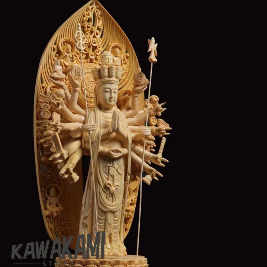 - 美術品・アンティーク・コレクション > 彫刻・オブジェ > 置物 開運 仏像 高級天然木彫り 千手観音 工芸品 極細工 美術品 風水 千手観音 仏像 観音像 木彫 檜 細工木彫 風水 開運 工芸品置物