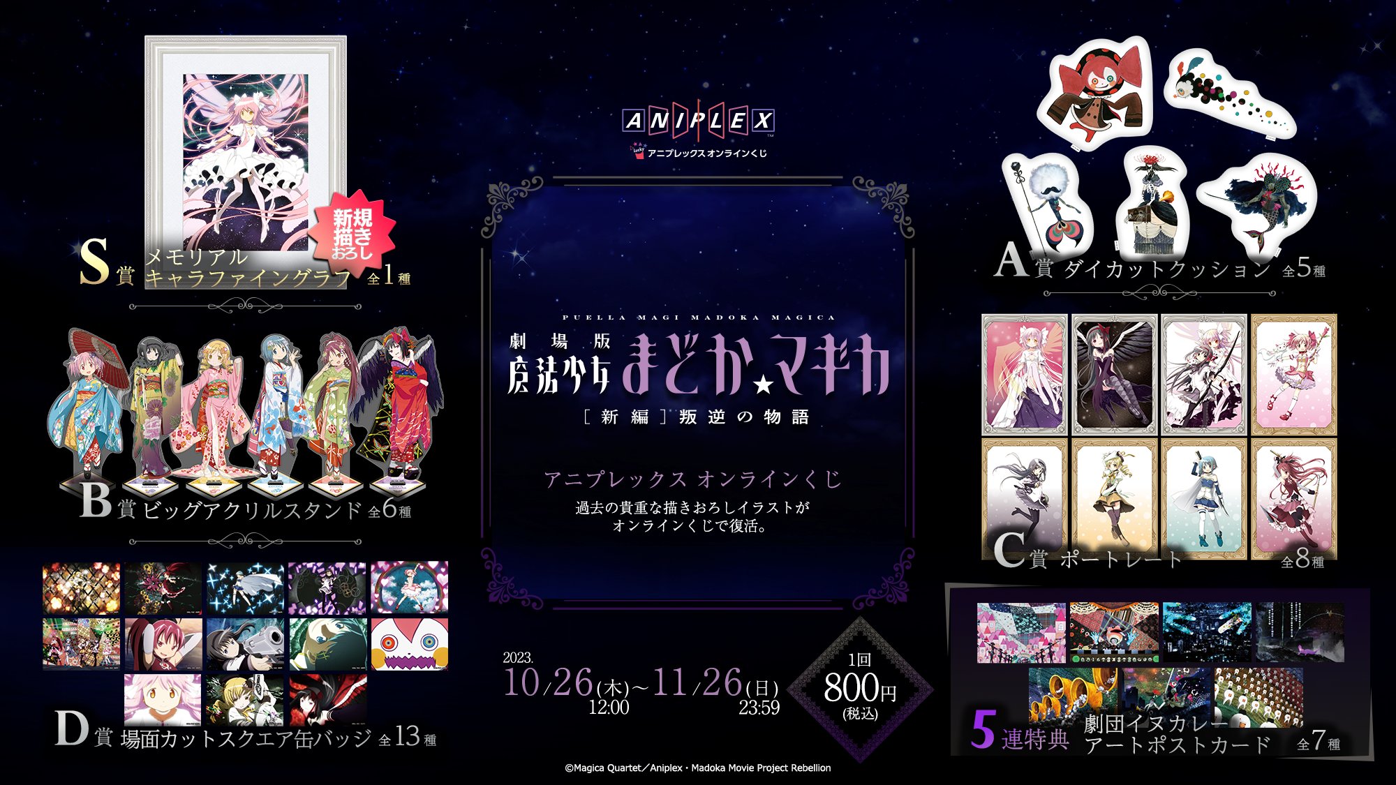 | 商品の特徴 | 魔法少女まどか☆マギカ on X: 。魔法少女まどか☆マギカ」シリーズオンラインくじ | くじ引き堂。魔法少女まどか☆マギカ」シリーズオンラインくじ | くじ引き堂。●全て新品未開封品です。劇場版 魔法少女まどか☆マギカ[新編]叛逆の物語。●即購入OK!〈セット内容〉★S賞 メモリアルキャラファイングラフ 全1種★A賞 ダイカットクッション 全5種★B賞 ビッグアクリルスタンド 全6種★C賞 ポートレート 全8種★D賞 場面カットスクエア缶バッジ 全13種★Wチャンス賞 劇団イヌカレ アートポストカード 全7種以上の全40種フルコンプセットです。。劇場版 魔法少女 まどか☆マギカ 新編 叛逆の物語 鹿目まどか 暁美ほむら 悪魔ほむら 巴マミ 美樹さやか 佐倉杏子 aniplex まどマギ フィギュア アクスタ アニプレ ぬいぐるみ 複製原画 | ||