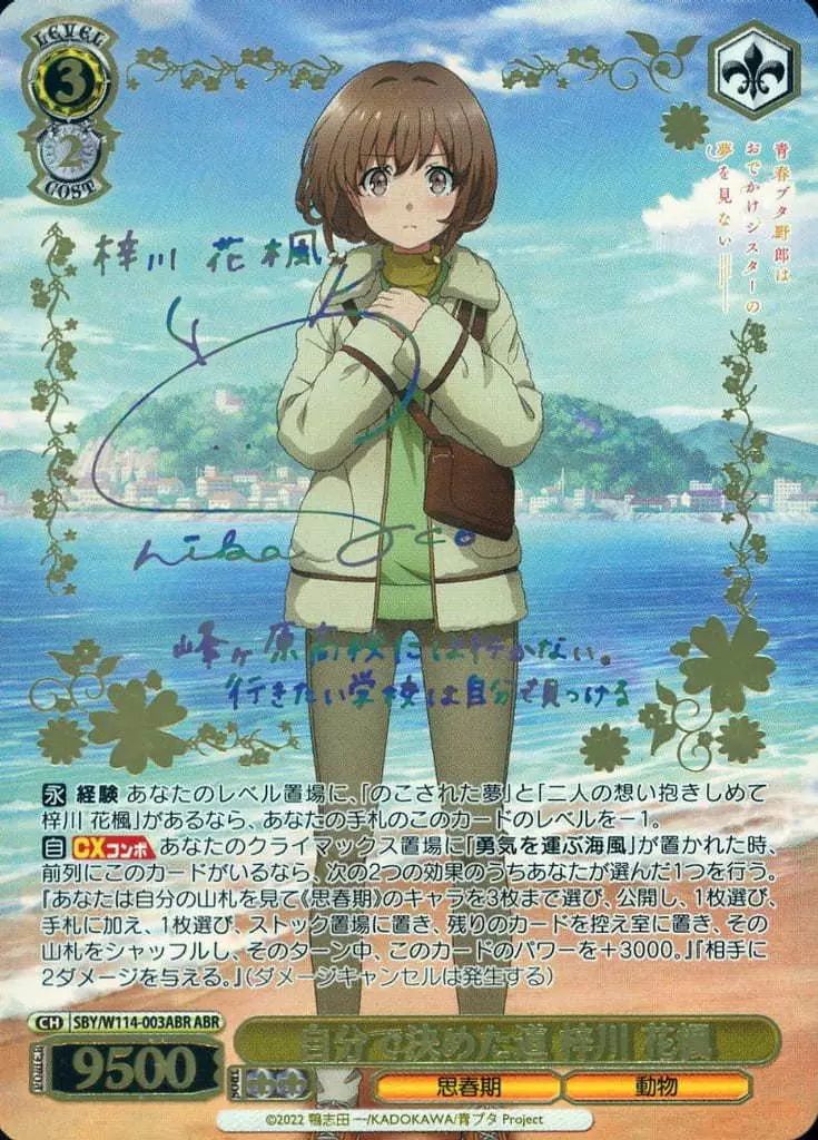 | 商品の特徴 | 中古】ヴァイスシュヴァルツ SBY/W114-003ABR[ABR]:(ホロ)自分。ヴァイスシュヴァルツ SBY/W114-003ABR 自分で決めた道 梓川 花。List of Kaede Azusagawa(花楓) | Buy from TCG Republic。R】頑張れるから 梓川 花楓 SBY/W114-004 - マナソース。ヴァイスシュヴァルツ 青春ブタ野郎 自分で決めた道 梓川 花楓 SBY/W114-003ABR パラレル サイン PSA10種別...シングルカード。 | ||