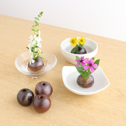 - 美術品・アンティーク・コレクション > 工芸品 > 江戸末期 古備前 一輪挿し花入 備前焼 花器 フラワーベース 花瓶 花生 華道具 備前焼 穴あき玉一輪(3個セット)【陶器・花器・花入れ