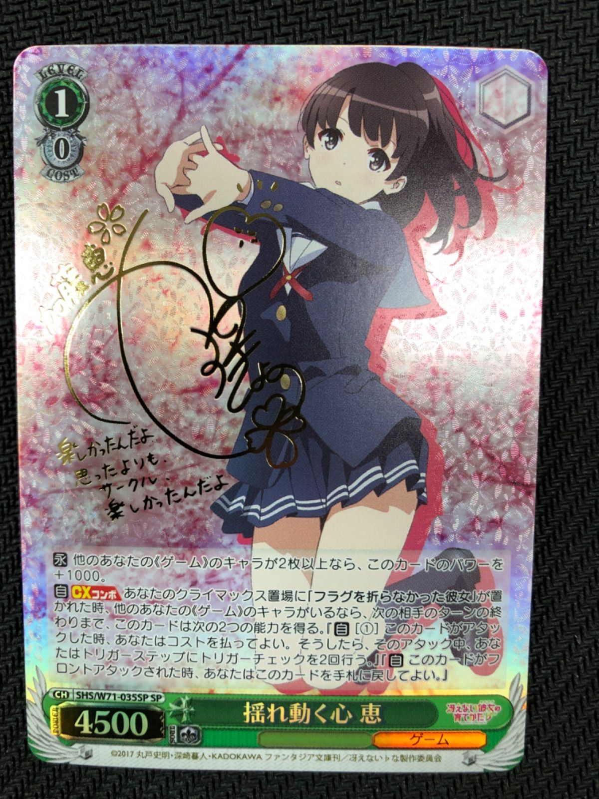 | 商品の特徴 | ヴァイス 揺れ動く心 恵 サイン n98 - メルカリ。2025年最新】ヴァイス spの人気アイテム - メルカリ。カードリスト | ヴァイスシュヴァルツ|Weiβ Schwarz。。濡れ折れを対策して発送します。カードリスト | ヴァイスシュヴァルツ|Weiβ Schwarz。サイン 加藤 恵 冴えカノ 冴えない彼女の育て方 | ||
