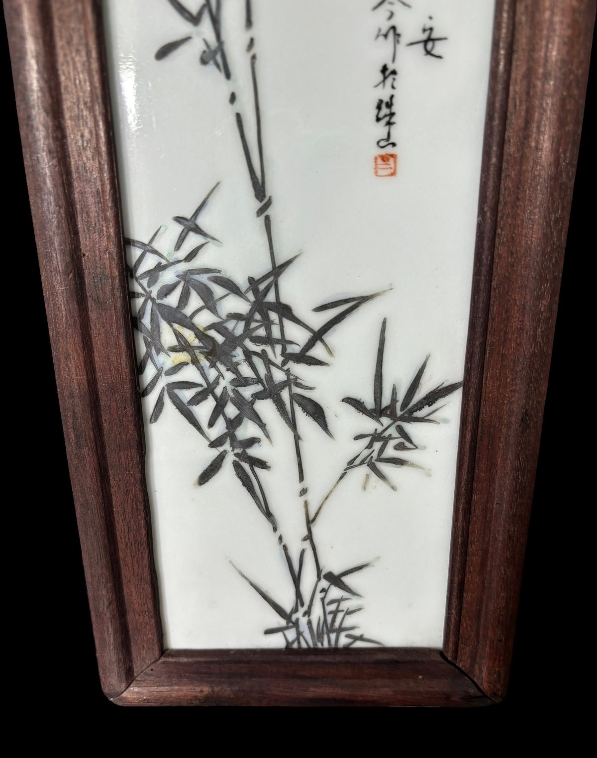 - 美術品・アンティーク・コレクション > 工芸品 > ⭕️中国 絵 中国美術 陶板画 山水 額装品 陶磁器//工芸 品/唐物/壁掛け 中国美術 陶板画 陶板額【竹】額装 壁掛 扁額 五彩 色絵 民国 古