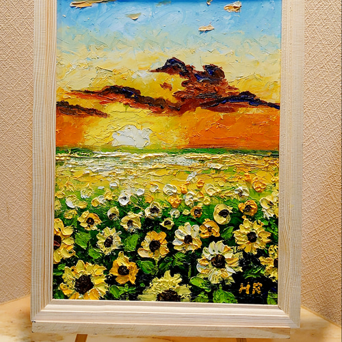 | メーカー | 油絵 絵画【夕暮れのひまわり畑】【A4】 |
