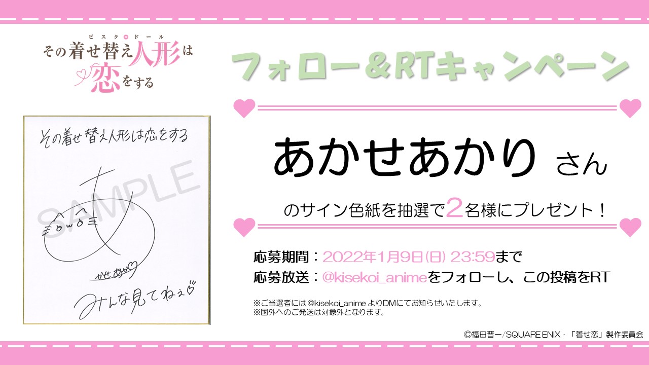 | メーカー | あかせあかり サイン TVアニメ『その着せ替え人形は恋をする』 |